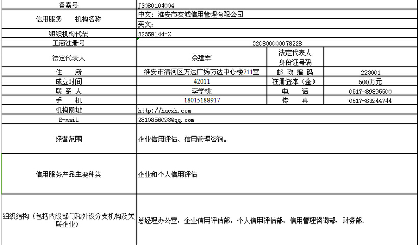淮安市友誠信用管理有限公司(具有淮安市招標領域評級資格)