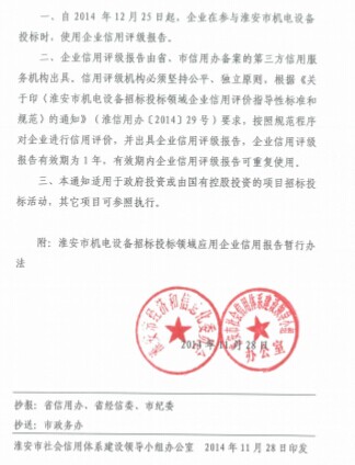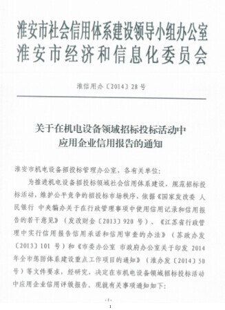 用報告的通知,淮信用辦[2014]28號